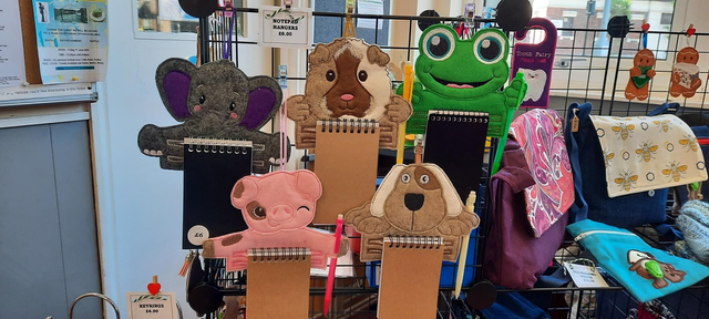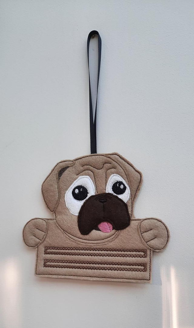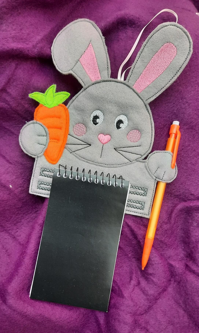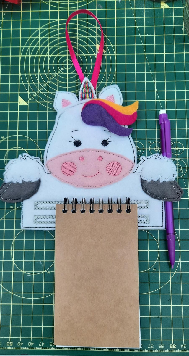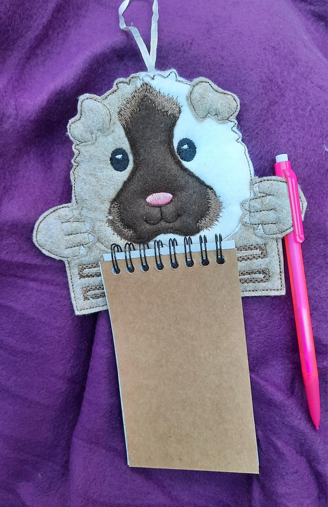 Notepad Hanger with notepad and pencil. A variety of machine embroidered designs on a felt base. Made to order, allow 14 days for despatch